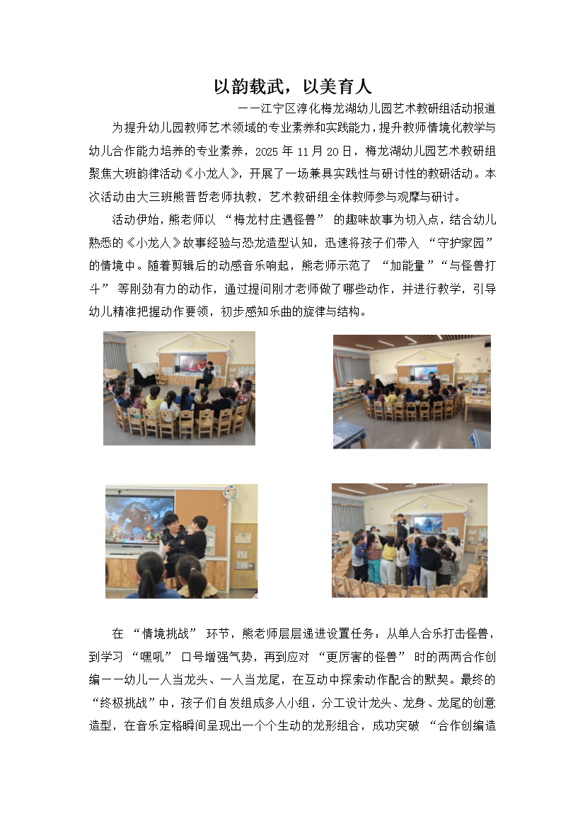 以韵载武 以美育人——江宁区淳化梅龙湖幼儿园艺术教研组活动报道