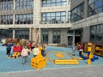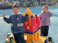 彩绘完成后,孩子们迫不及待地跑到自己搭建的梅龙湖建构作品旁,扬起带着彩绘的小脸,和作品合影打卡。一张张笑脸与积木搭建的“湖景”相映成趣,满是童真与欢乐。